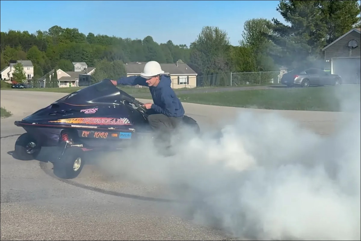 پاسخ تیم mycustomgokart ساده بود: چرخ گذاشتن روی اسنومبیل و تبدیل آن به یک وسیله نقلیه جادهای سهچرخه!