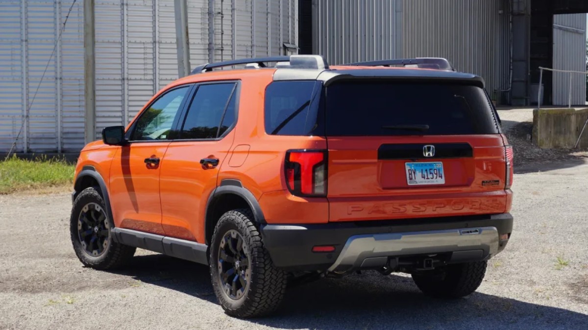 ظاهر پاسپورت تریلاسپرت ترکیبی از استحکام و ظرافت است. اگرچه خطوط مکعبی و کمی بالاتر بودن خودرو یادآور لندرور دیفندر است، اما در واقع نرمتر و کمتر پرزرقوبرق به نظر میرسد. رنگ نارنجی غروب آن توجه زیادی جلب میکند، اما طراحی کلی خودرو همچنان با کلاس و خوشاستیل باقی مانده است. رینگهای ۱۸ اینچی با لاستیکهای همهجارو و نوشته برجسته Passport جلو و عقب، نمایی محکم و مقاوم ایجاد میکنند بدون اینکه بیش از حد خودنمایی کنند. برخلاف برخی SUVهای دیگر مانند جیپ یا برونکو، این خودرو حس ماشینی مردانه و اغراقآمیز ندارد و مناسب خانوادههاست.
