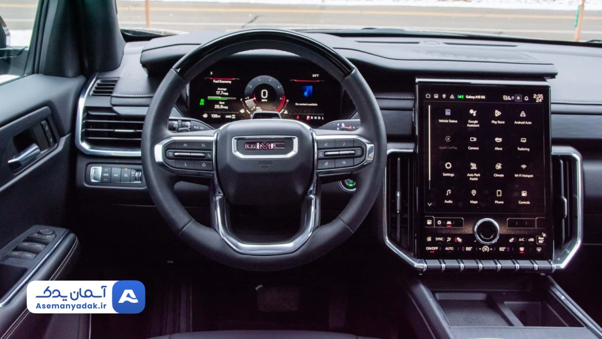 طراحی داخلی GMC Acadia 2024 نشاندهنده رویکرد مدرن و کاربرپسند این برند است. داشبورد این خودرو با یک صفحهنمایش پرتره 15 اینچی تزئین شده که نه تنها ظاهری جذاب دارد، بلکه دسترسی به امکانات و اطلاعات خودرو را نیز تسهیل میکند.