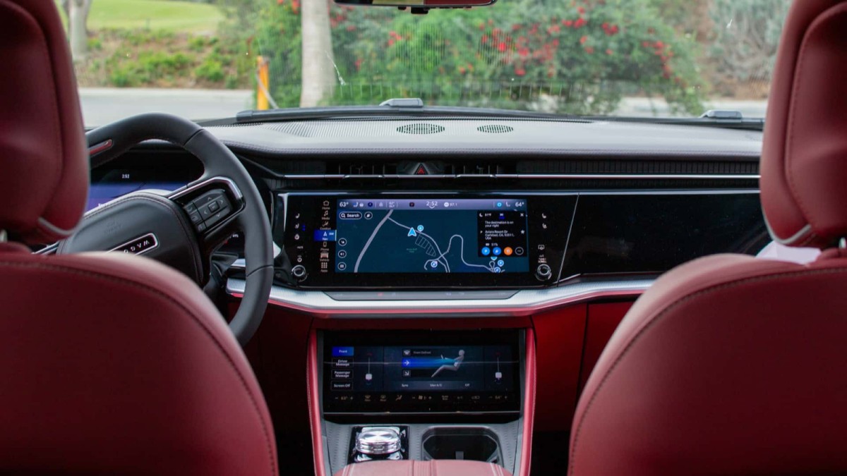 برای راننده، نمایشگر ۱۲.۳ اینچی که بهراحتی از طریق فرمان قابل مشاهده است، تجربهای کاربرپسند و مدرن را فراهم میکند. سیستم سرگرمی Uconnect 5 که در بالای این نمایشگر نصب شده است، با قابلیتهای پیشرفته خود به شما اجازه میدهد تا بهراحتی به موسیقی، مسیریابی، تنظیمات خودرو و اطلاعات دیگر دسترسی پیدا کنید. همچنین، پنل کنترل آبوهوای دیجیتال ۱۰.۳ اینچی که در زیر صفحه نمایش قرار دارد، قابلیت تنظیم دما و وضعیت تهویه را برای راحتی بیشتر سرنشینان فراهم میآورد.