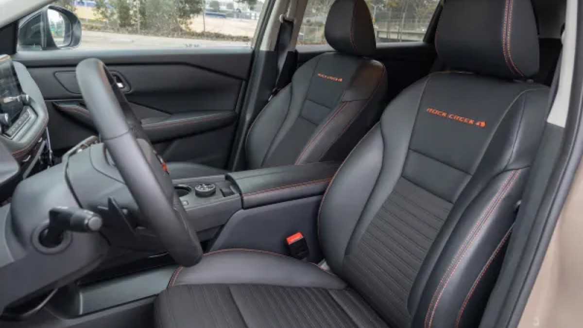 در داخل نیسان روگ راک کریک 2025، ادامه ویژگیهای ظاهری آن در قالب جزئیات نارنجی دیده میشود. دوختهای نارنجی در داشبورد، صندلیها، فرمان و پنل درها جلوهای خاص به کابین خودرو بخشیدهاند. این خودرو به راحتی به عنوان یک انتخاب عالی برای کسانی که به دنبال راحتی در طول رانندگیهای طولانی هستند، به شمار میآید. همچنین، کفپوشهای مخصوص این مدل که از جنس لاستیک مقاوم ساخته شدهاند، به حفظ تمیزی کابین کمک میکنند.
