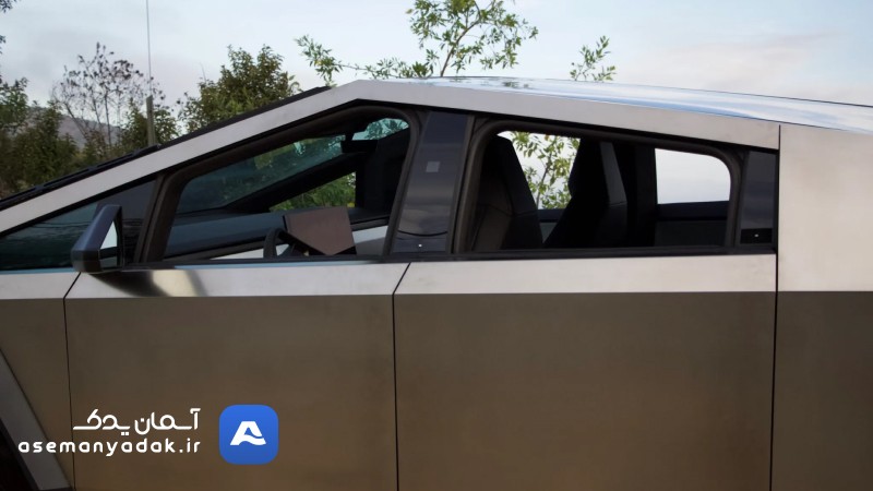 این طراحی نه تنها به دلیل ویژگیهای بصری جالب خود معروف شده، بلکه به دلیل استفاده از فولاد ضد زنگ در بدنه نیز قابل توجه است. این فولاد باعث میشود که سایبرتراک در برابر آسیبهای محیطی مانند خط و خش یا ضربات شدید، مقاومتر از دیگر خودروهای پیکاپ باشد.