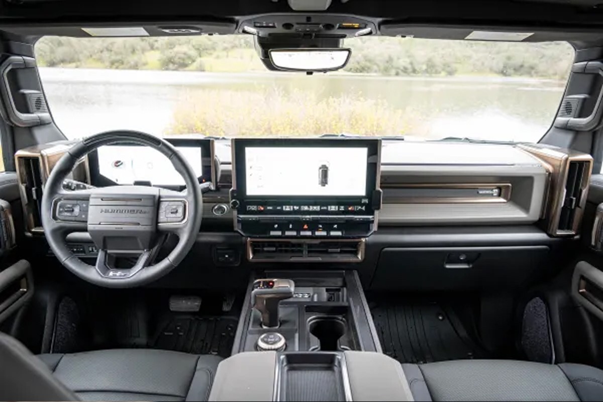 در داخل خودرو، Hummer EV SUV به همان اندازه که جذاب است، مشکلاتی دارد که شاید بتوان گفت که در خودرویی به این سطح از تکنولوژی و قیمت، شایسته نیست. مواد استفاده شده در قسمتهای پایین خودرو اغلب احساس نازکی و صدای توخالی دارند، و در بالای خط کمر، پلاستیکهایی که به راحتی خراشیده میشوند، به کار رفتهاند. علاوه بر این، سیستم کنترلی پیچیده و صفحه نمایش 13.4 اینچی، میتواند بیشتر گیجکننده باشد تا مفید.