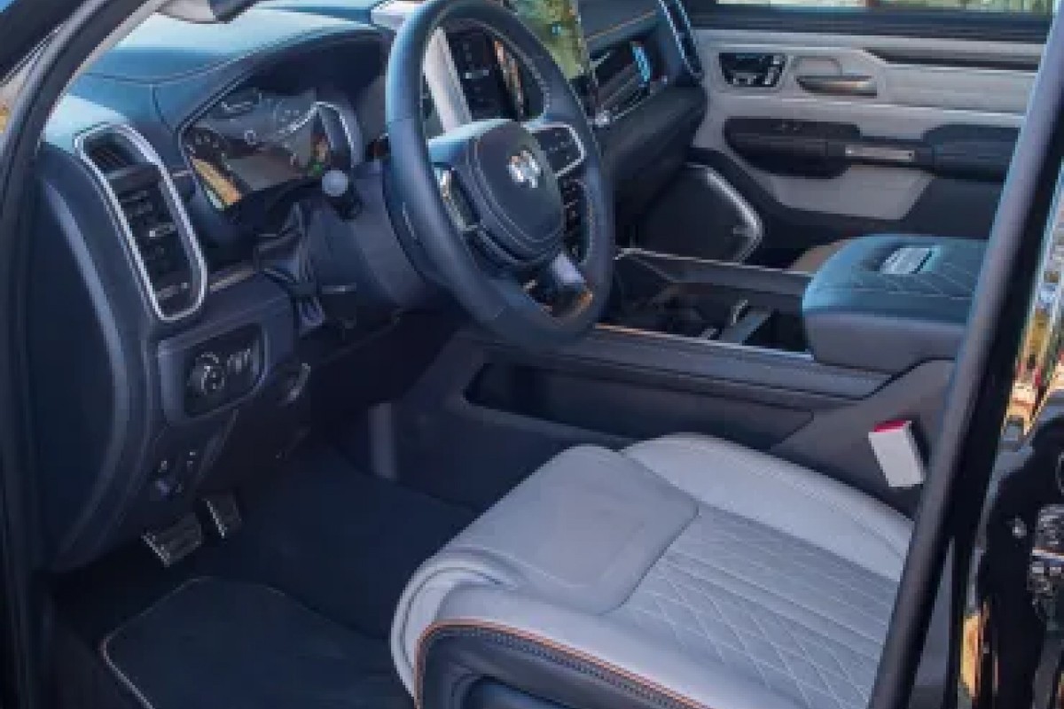 یکی دیگر از ویژگیهای قابل توجه رم 1500 مدل 2025، طراحی داخلی و سطح لوکس آن است. رم در این مدل بهطور قابل توجهی سطح تجمل را ارتقا داده است و مدل Tungsten به عنوان بالاترین تیپ، یک نمونه برجسته از این تغییرات است. این تیپ جدید با رنگهای خاص Sea Salt خاکی و Indigo به همراه صندلیهای با قابلیت تنظیم 24 جهته و سیستم ماساژ برای راننده و سرنشینان، تجربهای لوکس از یک پیکاپ را به ارمغان میآورد.