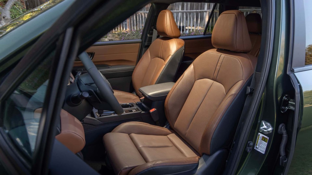 در فضای داخلی، سوبارو دست به بازطراحی کامل زده است. نمایشگر عمودی در نسل قبل، حالا جای خود را به یک نمایشگر افقی 12.1 اینچی داده که در بالای داشبورد قرار گرفته و تجربهای کاربرپسندتر فراهم میکند. در کنار آن، یک پنل دیجیتال 12.3 اینچی نیز جایگزین آمپرهای سنتی شده و ظاهر کابین را بهشدت مدرن کرده است. اگرچه این دو نمایشگر به یکدیگر متصل نیستند، اما درون یک قاب طراحی شدهاند که ظاهری یکدست و متقارن به داشبورد داده است.