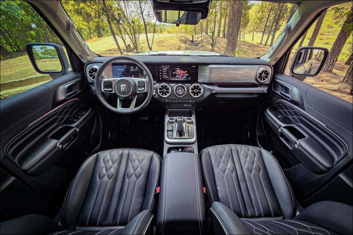 صفحه نمایش دیجیتال بزرگ برای داشبورد، صفحه لمسی مرکزی، تریم چرم، نورپردازی داخلی، فرمان با کلیدهای کنترلی و صندلیهای برقی گرمشونده تنها بخشی از امکانات رفاهی این خودرو هستند. از طرف دیگر، استفاده از کلیدهای فیزیکی برای کنترل برخی امکانات نظیر دیفرانسیل قفل شونده و حالتهای رانندگی، نشاندهنده این است که ویچینگ به کاربردی بودن خودرو در شرایط سخت نیز توجه کرده است.