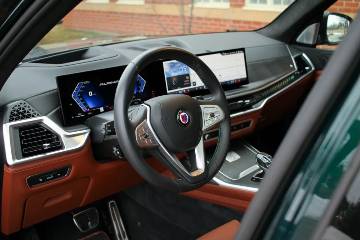 BMW X7 در نسخه پایه ممکن است خودرویی محافظهکار بهنظر برسد، اما نسخه Alpina XB7 تمام معادلات را تغییر میدهد. رنگ سبز خاص بدنه، رینگهای جذاب چندپره، چهار خروجی اگزوز و نوشتهی "ALPINA" روی سپر جلو، ظاهری شیک، اسپرت و متفاوت به این شاسیبلند بزرگ میدهد. حضور XB7 در خیابان مانند کسی است که لباس فاخر پوشیده اما در سکوت میدرخشد، نه با خودنمایی.