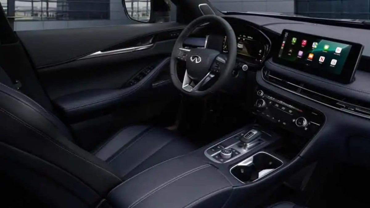 در فضای داخلی QX60 2026 تغییرات بزرگی مشاهده نمیشود، اما انتخابهای جدیدی در تودوزی ارائه شده است. نسخه اسپرت دارای روکش چرم آبی تیره (Dusk Blue) است که در کنار سقف مشکی و تریم چوبی با نقش فلزی، حس لوکستری به کابین میدهد. در مدلهای پایه مانند Pure و Luxe از تزئینات بافت نقرهای استفاده شده و گزینه جدید تودوزی خاکستری سنگی نیز قابل انتخاب است.