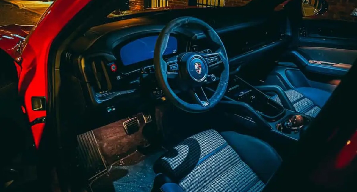 داخل کابین، پورشه نهایت دقت را در انتخاب مواد و فناوری به کار برده است. صفحه نمایش ۱۲.۳ اینچی لمسی، صفحه کیلومتر دیجیتال ۱۲.۶ اینچی و گزینهای برای افزودن صفحه نمایش لمسی ۱۰.۹ اینچی برای سرنشین جلو، فضای داخلی را بسیار مدرن و لوکس کردهاند. سیستم ارتباطی PCM با پشتیبانی از Apple CarPlay و Android Auto به صورت بیسیم، سیستم صوتی Bose و امکانات رفاهی فراوان، سفر با این خودرو را بسیار لذتبخش میکند.