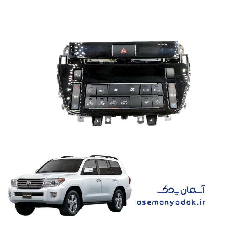 کنترل پنل کولر تویوتا لندکروز، یک قسمت اساسی و کلیدی از سیستم تهویه مطبوع خودرو است که به راننده و سرنشینان این امکان را میدهد که دمای داخل کابین خودرو را کنترل کرده و تنظیمات مربوط به کولر و گرمایش را تغییر دهند. این پنل بهطور مستقیم با سیستم تهویه، کمپرسور، فن و دریچههای کولر ارتباط دارد و با استفاده از دکمهها، سوئیچها یا صفحهنمایش لمسی، کاربر میتواند تنظیمات مختلفی مانند دما، سرعت فن، وضعیت تهویه (خنککنندگی یا گرمایش) و حتی جهت باد را انتخاب کند.