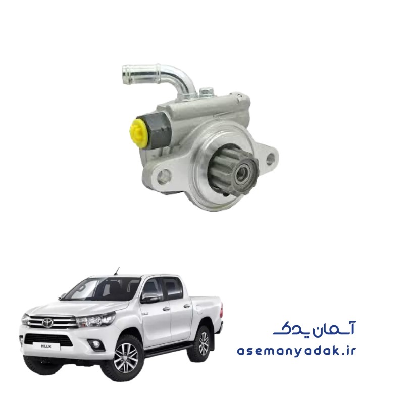 پمپ هیدرولیک فرمان یکی از اجزای مهم سیستم فرمان هیدرولیک در خودروها است که نقش اساسی در تسهیل حرکت فرمان و راحتی رانندگی ایفا میکند. در تویوتا هایلوکس، پمپ هیدرولیک فرمان از نوع پمپ دندهای یا پیستونی است که بهوسیله موتور خودرو بهطور مداوم کار میکند تا فشار لازم را برای سیستم هیدرولیک فراهم کند. این پمپ به کمک روغن هیدرولیک، نیروی اعمالی از سوی راننده را تقویت کرده و بهصورت روان و آسان فرمان را چرخش میدهد، که این عملکرد باعث میشود فرمان خودرو به راحتی حرکت کند و راننده کمتر دچار خستگی شود. در صورتی که پمپ هیدرولیک فرمان دچار خرابی یا کاهش کارایی شود، فرمان خودرو سنگین شده و کنترل آن دشوار میشود.